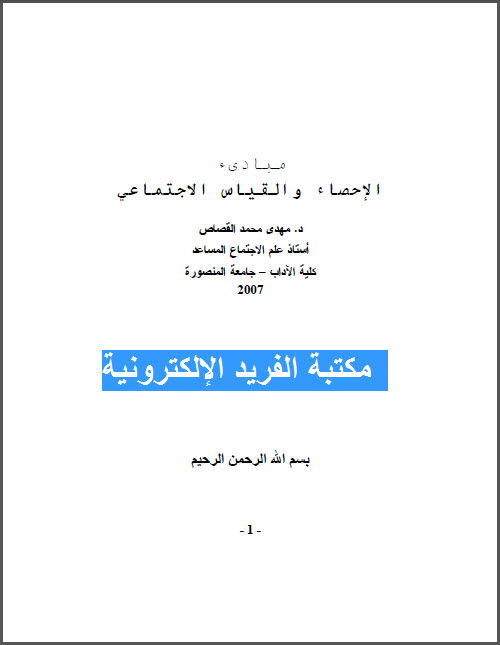 تحميل كتاب الإحصاء الاجتماعي Pdf مكتبة الفريد الإلكترونية