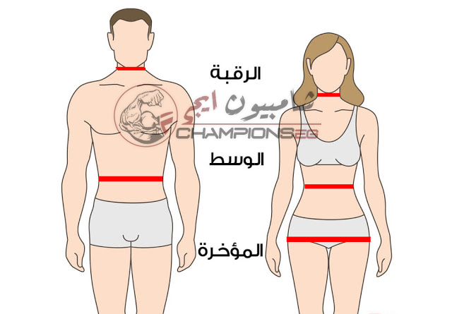 الرسم التالي يوضح طريقة رفع قياسات الجسم وسوف نشرح الطريقة بالتفصيل.
