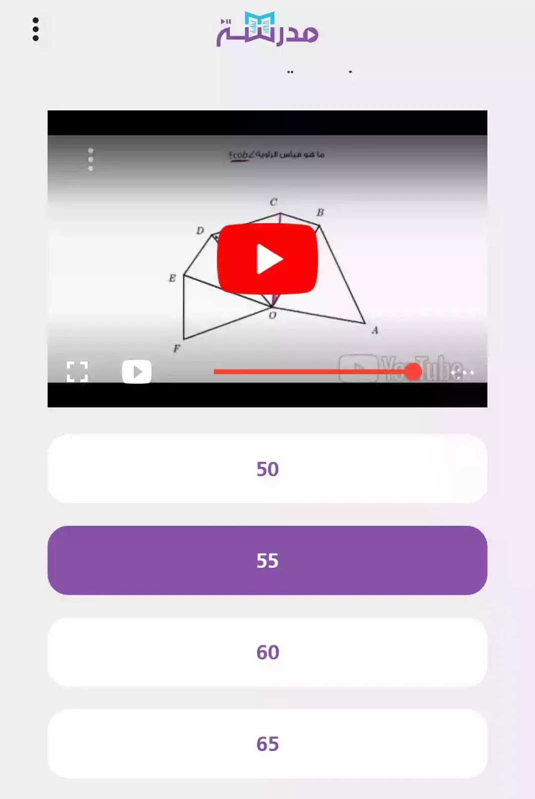 إذا كان مجموع قياس زاويتين يساوي 125 درجة وكان قياس الزاوية