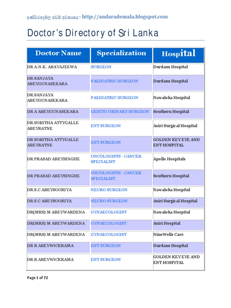 Directory Std Clinics In Sri Lanka National Std Aids Control