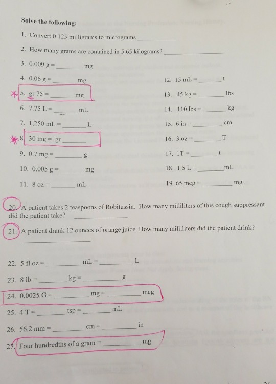 Solved Solve The Following 1 Convert 0 125 Milligrams T