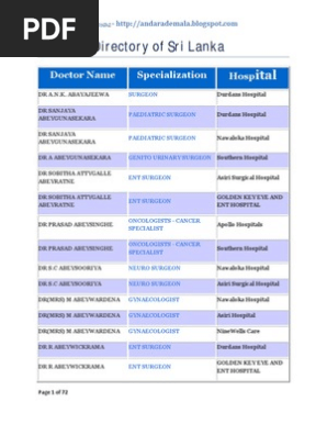 Doctor S Directory Of Sri Lanka